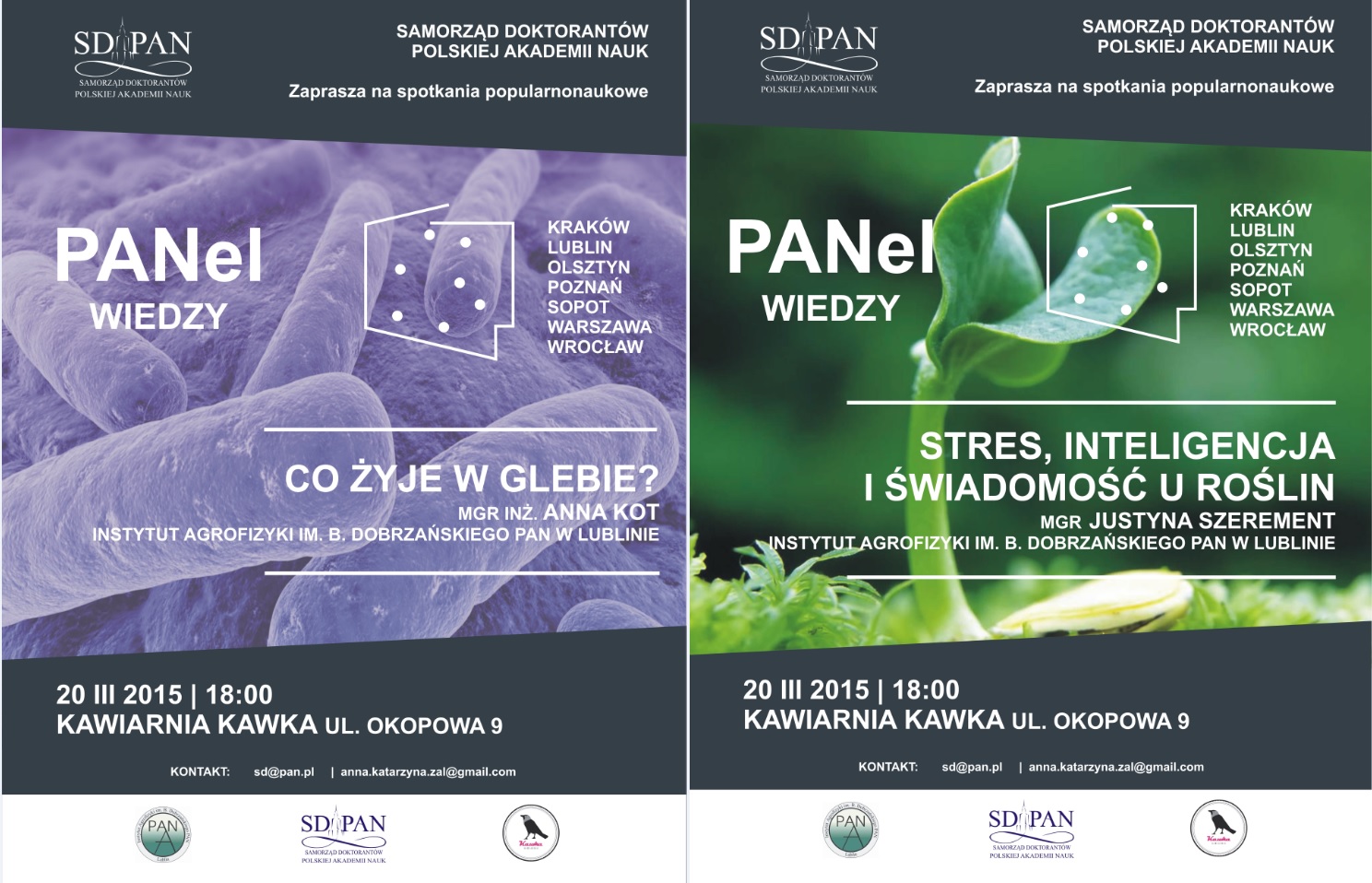 Dyrekcja Instytutu Agrofizyki PAN w Lublinie ma zaszczyt poinformować, że 20 marca w Kawiarni Kawka, ul. Okopowa 9, o godzinie 18:00, odbędzie się spotkanie z cyklu PANel Wiedzy. Będziecie Państwo mieli możliwość wysłuchania prelekcji dwóch doktorantek naszego Instytutu: